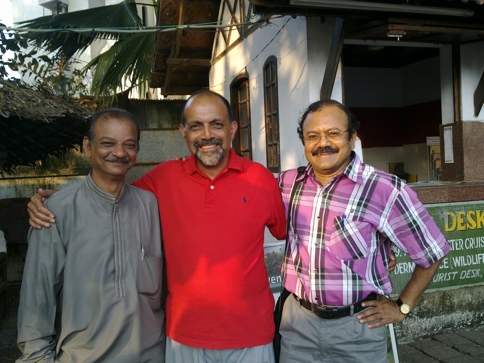 Photos: Mark Peters (extreme left) with South African journalist Mansoor Jaffer and Shevlin Sebastian. Photo taken by Mansoor's wife Kay