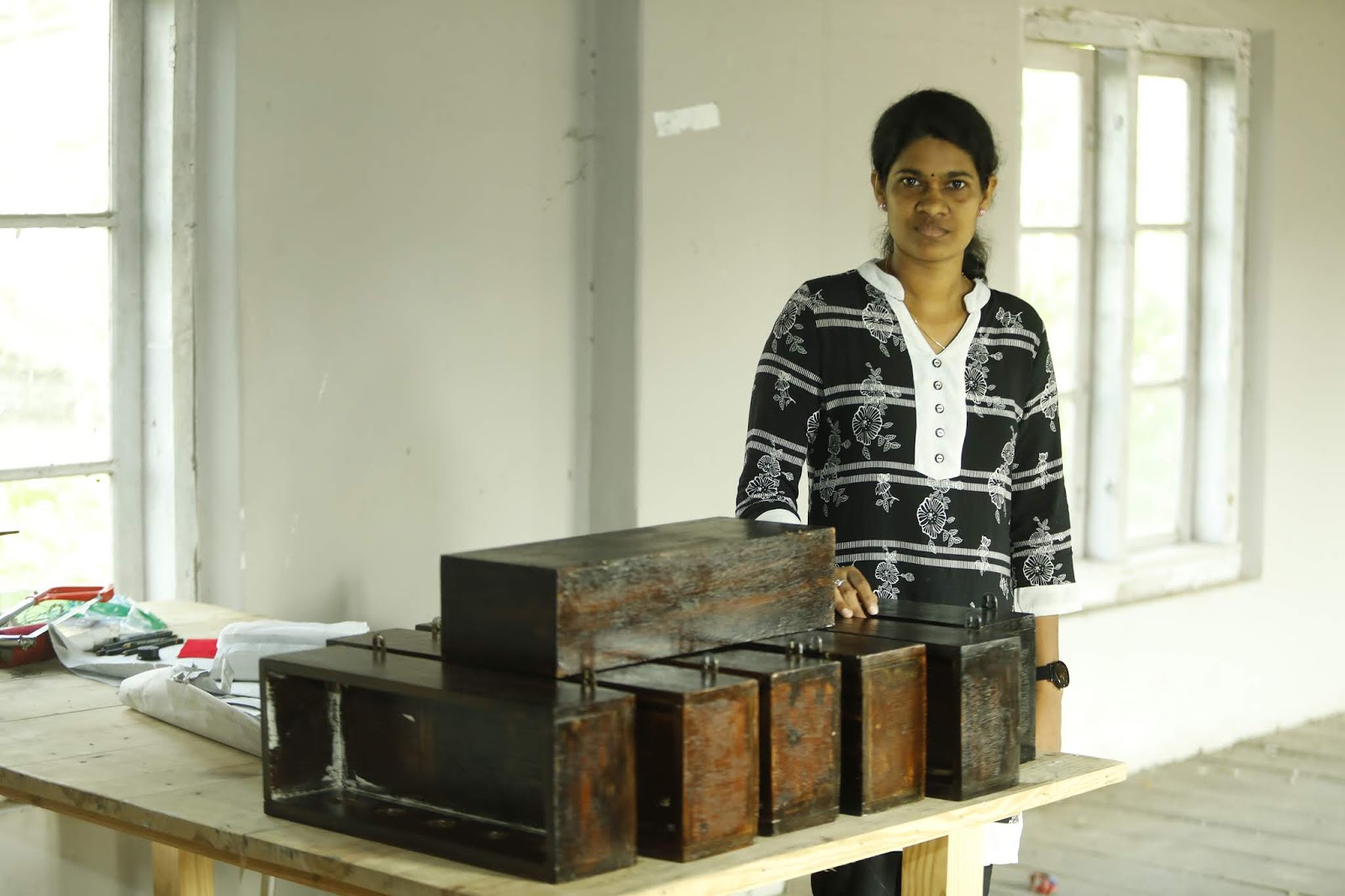 Jasmine Nilani Joseph sits next to a window in a large hall at Pepper House, at Fort Kochi. On a table in front of her, there are long wooden boxes. “Tamils have a tradition of collecting jewels,” says Jasmine, an artist from Sri Lanka. “Normally, they don’t wear the jewels, which they have. They keep it inside a box, and tell people, ‘I have this much jewellery’.”