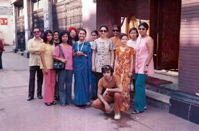 Right in front of the group, sitting on his haunches is the handsome Ronald Gass. His sunshades are resting on his wavy hair, and he wears a brown T-shirt and slacks, with long sideburns, a style statement of that time.