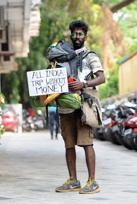 Later, Rijo travelled to Ajmer, Pushkar, and Jaipur. It was in the Pink City that he put up a sign on the back of his rucksack: ‘All India Trip without money’. Later, he went to Gurugram, Delhi, Chandigarh, Kulu, Manali, the states of Andhra Pradesh and Telangana, Chennai, Mahabalipuram, Bangalore, Mangaluru, Kasaragod, Kannur and Kochi, a total of 46 days. Everywhere he went he depended on the kindness of strangers for food, shelter and travel. In most places, he would put up a tent and sleep inside it.