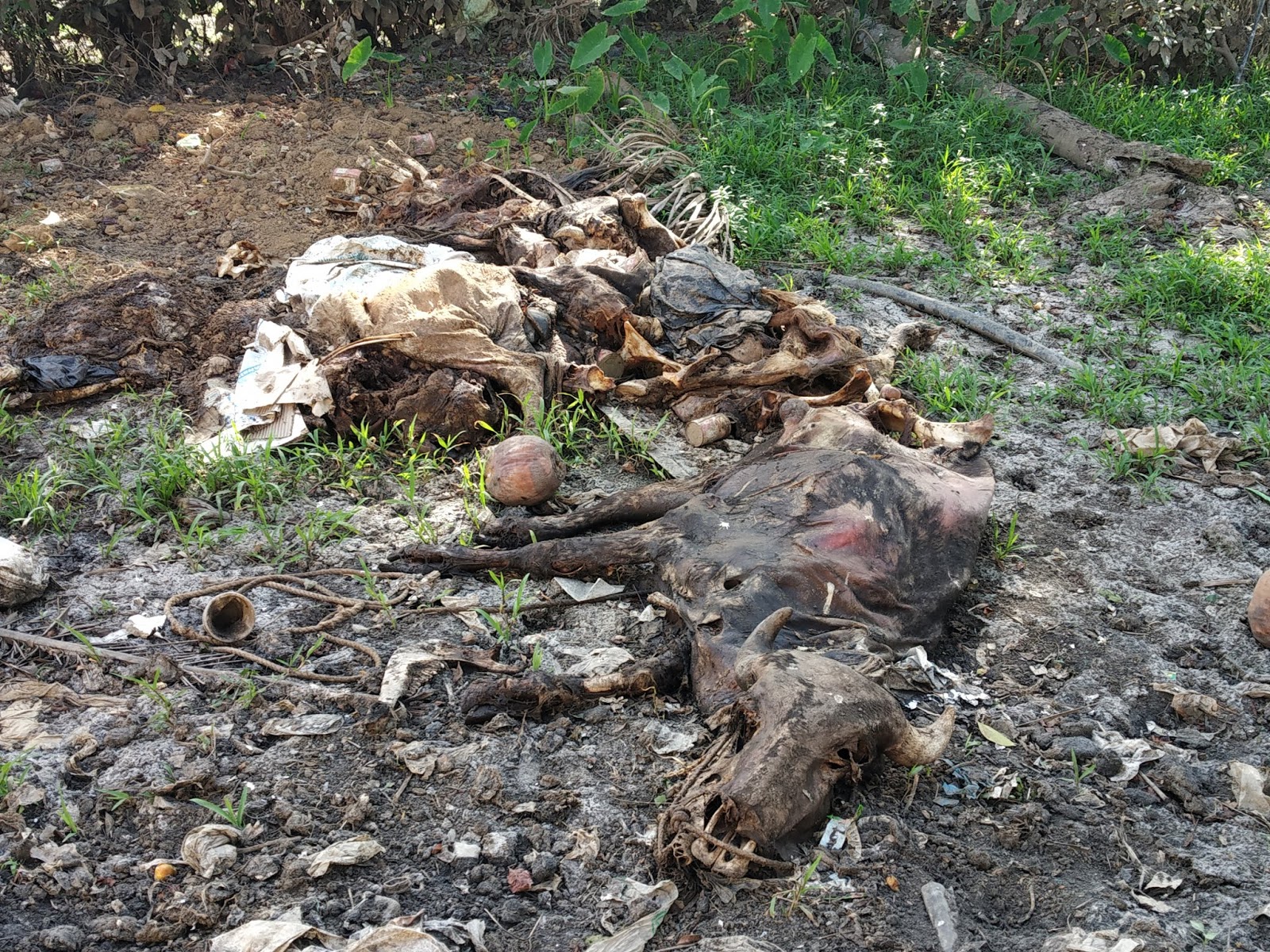 As the days went by, Babu began to bury the animals in six-foot pits on the farm and covered it with mud. But the job is yet to be completed. On a recent visit, one could see the carcass of several cows, amidst a couple of skeletons. The stench was unbearable. “Look at their state,” says Babu. “They were so healthy once.”
