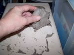 I’ve spent most of the morning wedging and kneading clay. It’s actually an enjoyable task, taking my reclaimed clay, my throwing failures and the hard clay from the bag and mixing it all together to get set up for the next few days of clay play. I begin with the piles of different hardness and cut them into slices to make layers that let me mix them all together. Then I take the big block and cut slices across the previous direction, turning the slices as I pile them to get the maximum mix. The final step is to take 2kg lumps to knead, and as I knead it slowly gets less lumpy and sticky, becoming more plastic and almost silky to the touch. There you have it, eight amazing little parcels of potential. It’s making me smile just to look at the photo.