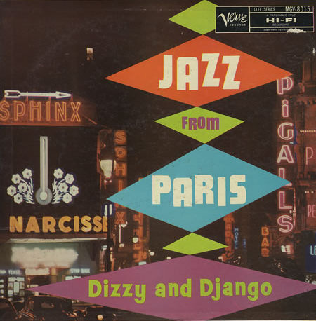 Dizzy Gillespie and Django Reinhardt - Jazz from Paris: The Verve label split album was released in '56 and recorded in the early 50s. By this time Dizzy had already had a blistering career, playing with all the giants and having made a name for himself as trumpeter. He was already popular in Paris and he plays here with string accompaniment. It's mellow fairy tale recording and quite pretty, if not altogether essential. The Django Reinhardt side was an afterthought for me, but ended up being the star. The Gypsy guitarist totally swings on this eerie recording, which was done only months before he died. If Dizzy captures the romance of Paris, Django captures the underworld of Paris.