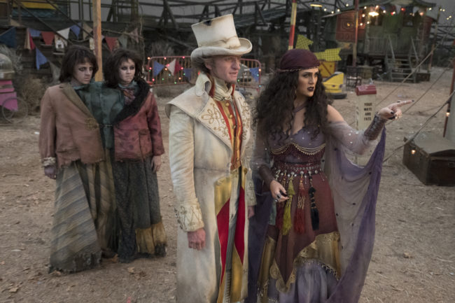 The ninth book in Lemony Snickett's children's book series makes up the plot of the two second season finale of the Netflix adaptation. After fleeing the fire that consumed the Heimlich hospital in the previous episode in the trunk of Count Olaf's car, the Baudelaire orphans find themselves transported to a dying carnival deep in the Hinterlands where Count Olaf hopes to find answers to the question of a surviving Baudelaire parent raised in the last episode.