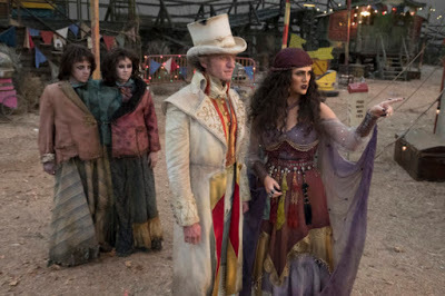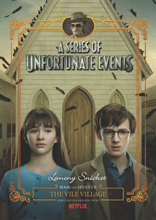 I've now completed watching the adaptation of the sixth book in A Series of Unfortunate Events, "The Vile Village." As this episode begins, the Baudelairs are being taken to the town of V.F.D. and assume that they will get all the answers they seek about the secret organization of the same initials. Against all better judgement, they are hopeful that this will be a good place and that the town's slogan of "It Takes a Village" will mean they are entering a place where kind people will care for them. Of course, they're wrong.