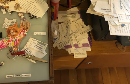 Being a visual project, the images are extremely important. It's the biggest visual art project I've worked on it years and I've been loving this new outlet. But the writing aspects are equally important to me. I've been employing a cut-up technique in the writing part. I search though batches of text for a word or string of words that infuse the story portrayed in the image. Sometimes a string of words end up on my "thinking board" and inspires the selection of images that will be pieced together.