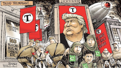 I'd been saying all during the election cycle that Trump wasn't running for President, he was running to become a dictator. His actions in the past two weeks only seem to support that theory. Not only has he chosen disgusting people to fill the top positions, but he continues to attack the basic beliefs of the Constitution. This past week, he made clear attacks on the free speech, the right protest, and the press. He continues to lash out at any person or organization that criticizes him. So what happens when a nation criticizes the inevitable horrible decisions he will make? What happens to our already fragile journalism when he "opens up the libel laws?" And what happens when the rash of hate crimes that followed his election continue and grow? What is his relation to Russia and the dangerous role they played in our democracy? How will Trump respond?