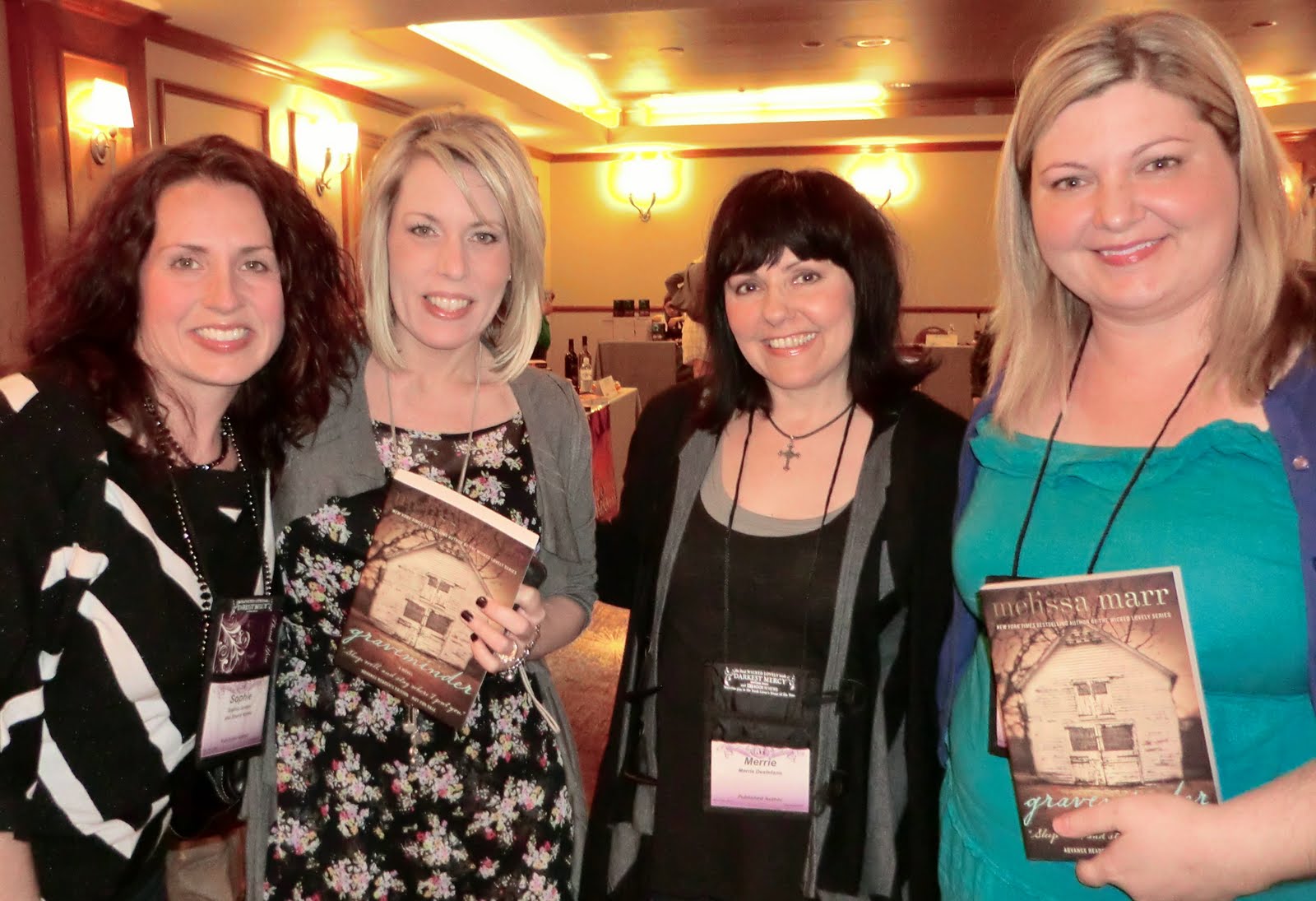 The Dusk Til Dark event was about to begin, but first we stopped for a quick photo. Here we have Sophie Jordan, Kimberly Derting, me, and Tera Lynn Childs. Notice the copies of Graveminder Kimberly and Tera are holding. I think we all got a copy. I already started reading mine and I LOVE it!