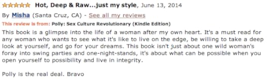 “I can’t wait to read and fondle Polly’s book. She is a fearless love warrior whose love knows no bounds. Adventurous, fun, funny, on the cutting edge of sex/party science, she lives her life as art.”