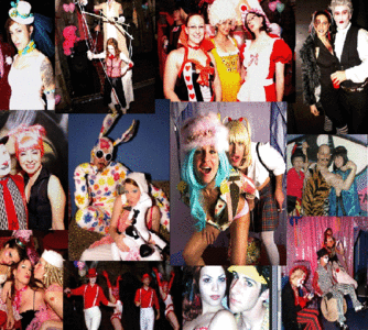 apprentice. She was quite the expert. She removed her fedora hat, then lifted and separated the breasts in front of her. Placing her face between them, she blew out a loud, “PPHHHFFFFFFTTT,” moving her head from side to side. It’s not as easy as it sounds. Most people’s attempts ended with a quiet “pfhh.” Nikki didn’t mind showing them again. Uproarious laughter followed each try. She even demonstrated on men, grabbing their pecs and squeezing them together to make a crease, proving that breast size has nothing to do with a good motorboat. Each cleavage, whether male or female, was left with a streak of lipstick, glitter, and a smudge of mustache.”