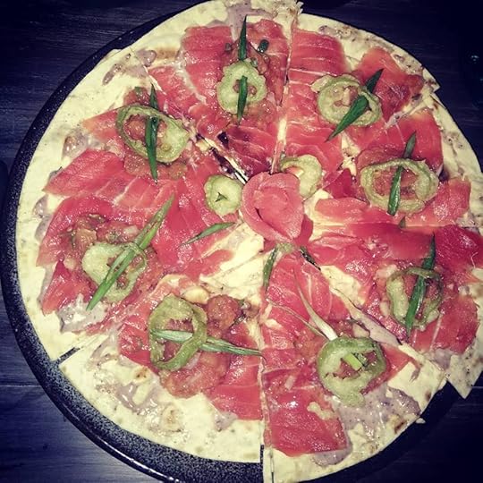 If you like Baos the Teriyaki Chicken Bao is a quick snack to grab. Nothing fancy, your routine Bao just done right. They also have adopted items from the Nagai menu like the Sushi, but I already eat Sushi upstairs all the time so skipped it at Boho. Instead, I went with the staff recommendation of AkamiTuna Pizza. If you are a seafood/fish/tuna fan you will love it. It is like an acquired taste. Not everyone I believe will love it. But it bowled me over.