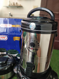 Back to the water dispenser clearly of A grade quality looks beautiful with silver and black shade, the top is very contemporary. And it is quite a utility item with a glossed tap and enough water to hold for 2-3 people.