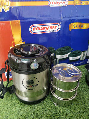 ..............Coming down to the three-tiered tiffin box. It's good quantity you can easily pack a sufficient amount of vegetables and other food items in the tiffin box. Which is again very good looking and very contemporary in design.