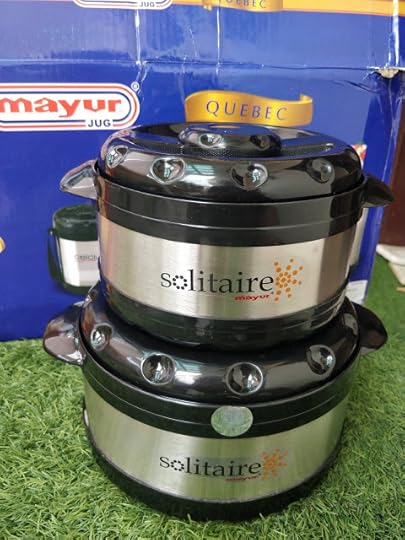 Casseroles in the box in the gift box both of them very good very easy which are usually required in a small home the sizes are quite useful for a small as well as a medium size family. They have been added from the specially designed Solitaire range of Casseroles from Mayur. The food stays warm and fresh in this boxes and the lids close properly.