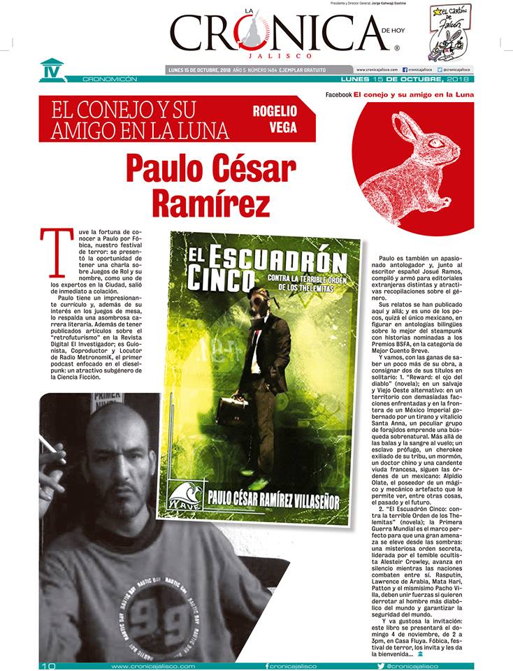 El pasado Lunes 15 de Octubre tuve la oportunidad de aparecer en las páginas de La Crónica de Hoy, de Jalisco. tanto en su versión digital como en su versión impresa.