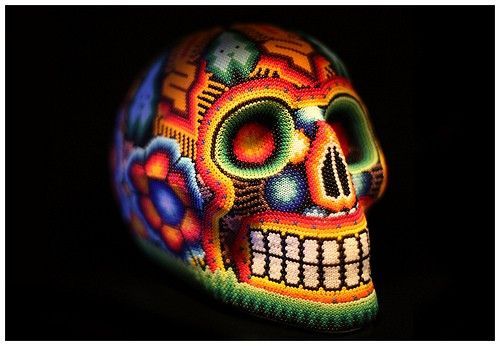 Miquiztli, art by Xicana artist Veronica Xochitl ValadezEl Día de los Muertos es una tradición ancestral en México. El culto a la muerte es tan variado y colorido como lo son los altares que se levantan para el recuerdo de los que ya no viven entre nosotros. Dulces, calaveritas,cultura y misticismo se mezclan en una amalgama que es difícil de describir en unas cuantas líneas.