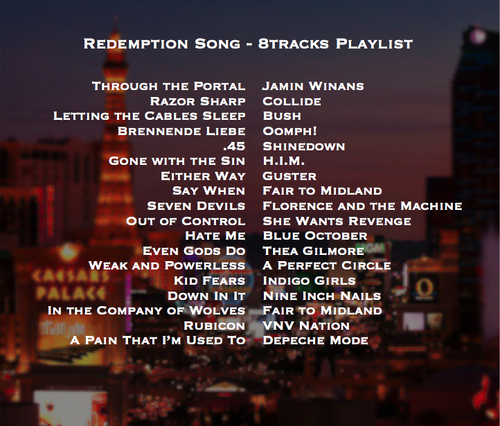 As you can see, I have this tendency toward the eclectic. Most of that is because I listen to every kind of music, and because homogenized sound tends to wash over me in a blur after a while. This particular list is culled from various parts of Faust’s life and personality. Kid Fears plays a large part in the first book, but returns in force for Redemption Song. Fair to Midland is a band with a great sound, and they reference imagery I love for a Vegas based story.