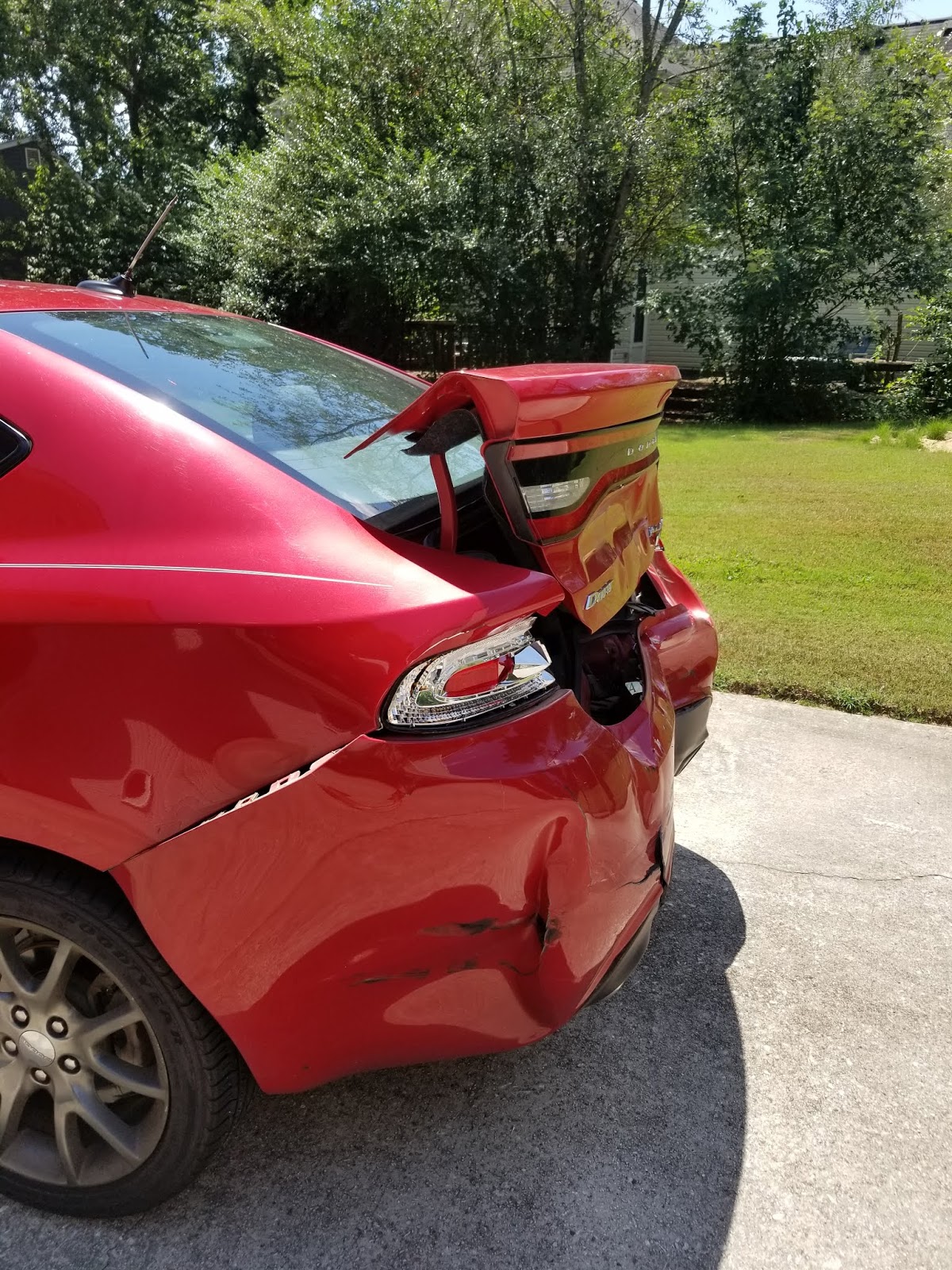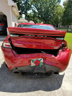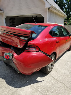 Now comes the not so fun part of dealing with insurance and hopefully being able to get it repaired because we do not want to car shop again. But it's a material thing so in the grand scheme of things, it's minor.