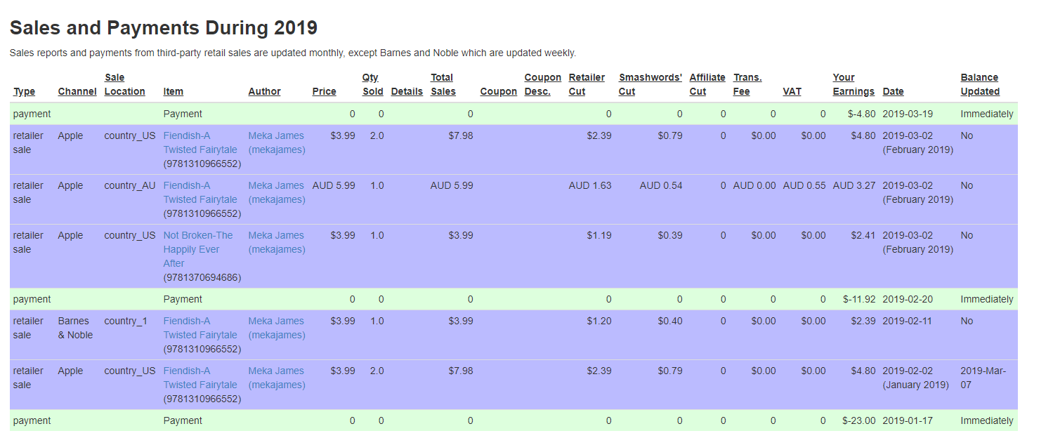 I'm not buying a a summer house in the South of France anytime soon. LOL It's a little small to see, but I'd only had ONE sale of Not Broken across all platforms. None for The Lists.