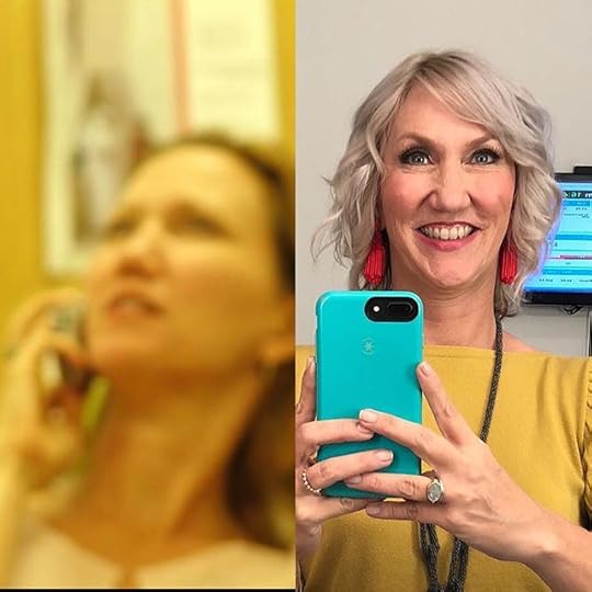 The pic on the left is my first profile picture for Facebook. It was taken in my office at Carnegie Mellon University in Qatar. I was freshly divorced and scrambling to find the proverbial, “what NOW?” I was working at least six days a week, smoked a lot, was in terrible physical shape, and felt tense and lonely. Now, many yoga mats and meditation cushions later, I work less for more money, am married to a deliriously wonderful man, and no matter what the fuck life throws at me, I know I will be OK. All because I learned how to tap into the still part of myself that is liquid unconditional loving, and stop taking everything so damn seriously.