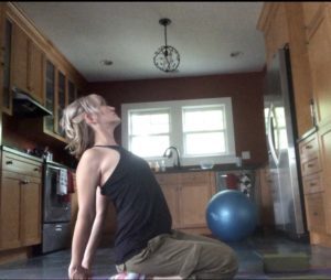 If you cactus your arms you’ll get a deeper opening as your shoulder blades roll toward the floor. I like to do rolling belly breaths and place one hand on my belly and the other on my heart.