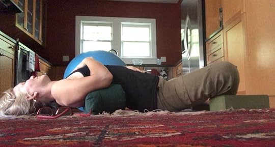 Place a bolster, or slim pillow, or folded blanket under your back at the base of your shoulder blades (the bra line)