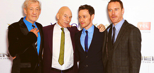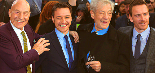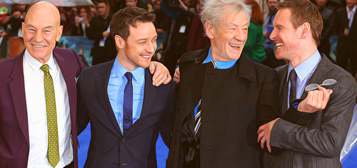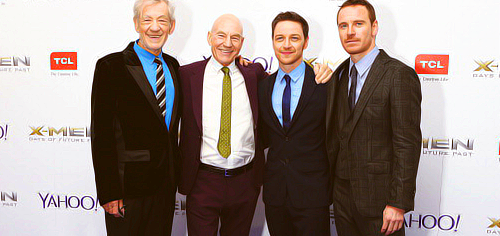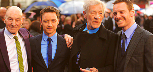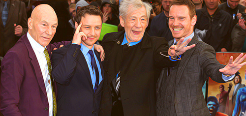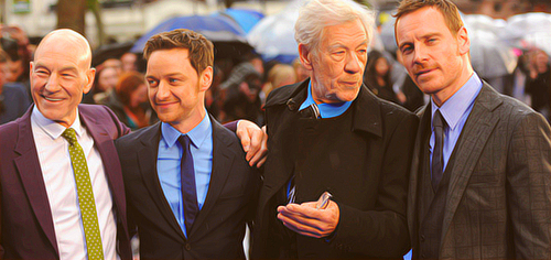 LONDON, ENGLAND - MAY 12: (L-R) Actors Sir Patrick Stewart, James McAvoy, Sir Ian McKellen and Michael Fassbender attend the UK Premiere of ‘X-Men: Days of Future Past’ at Odeon Leicester Square on May 12, 2014 in London, England.