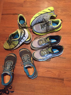 3 Pairs of Hokas and my Altra Lone PeaksAs fall returned, I knocked out a few trail 25Ks (actually 2, with a DNF in a third after losing a skirmish with a rock). I ran all in my Altra Lone Peaks. The LPs performed well - as they had when I used them to climb Mt. Elbert earlier in the year. The shoes have massive toe boxes, so there is almost no incidence of getting black toe from smashing up against the front of the shoe on a downhill run. For super rocky running, a runner might want to consider getting a brand/model with a more serious rock plate. But on the whole, the LPs perform well, providing decent cushioning, great ground feel and grip, breathability, and comfort throughout a decently long run.