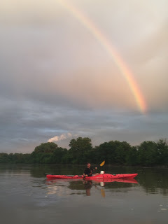 With Blair Sutton and a rainbow on the Kaw on July 4 - heading down from Perry to Lawrence to watch the fireworks from the river