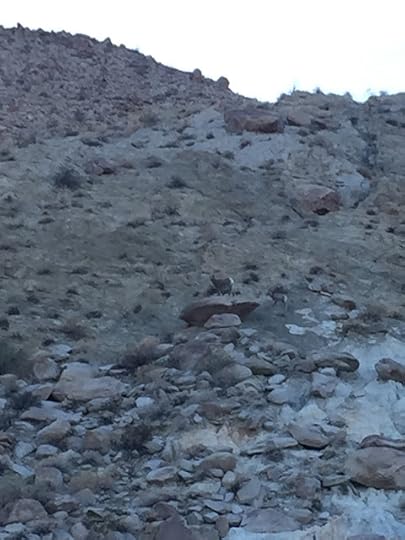 Finally, One of the neatest things we saw during our stay in the desert was a trio of bighorn sheep. They hung out about 200 feet above our camp for three hours on day two of the trip. With boy scouts and campers noisily going about their lives below, the sheep grazed on the side of the slope paying little heed to their temporary human neighbors. It was pretty cool to witness.