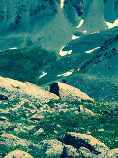 Anyway, I made my way to a pile of rocks near the summit of the second mountain I had climbed, found a spot to sit that overlooked an absolutely pristine valley - no roads, houses, power lines. I drank some water, had and apple, and watched marmots at play among the boulders and wildflowers. Throughout the hike, whenever I was on a flat or slight up or downhill, I strapped my pack tighter and did a bit of trail running. I was at a higher altitude than I had been for most of the trip, but my energy levels were great. Running felt good. It was a truly lovely experience. It was with quite a bit of regret that I finally made my way back down the slope and then another half mile walking along the highway to where I had parked the truck.