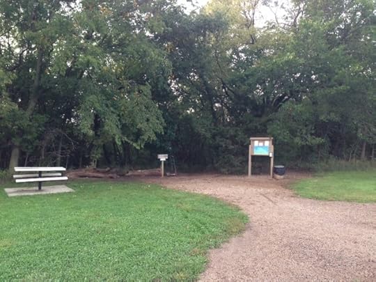 I knew, however, that I could see the paths from a point on the SLT trail that I also run regularly. So I headed out the west exit of the sporting complex (which also includes KU's Rock Chalk Park), and headed north toward the Lecompton interchange on the SLT trail. After a few hundred yards, I saw the new path coming down a hill to my right (east). I waded through tall grass and made my way across a little stream (being very careful to look for snakes), and made my way to the new paths.