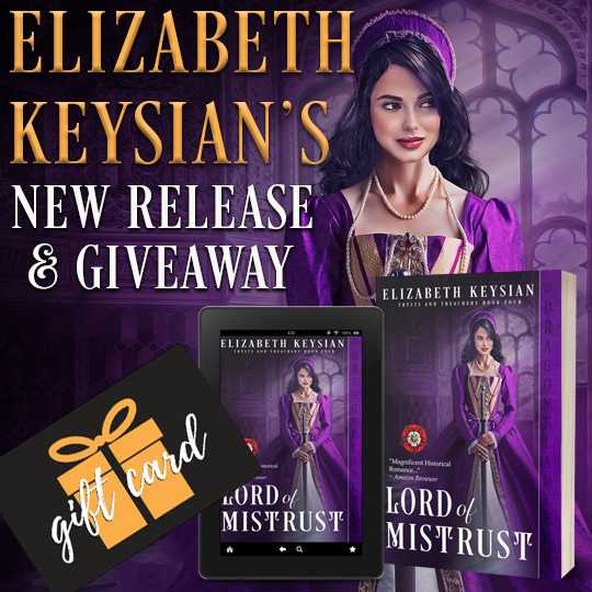 If you do, all well and good- I’ll tell you about three contests currently going on where you can try your luck. And if you need cheering up, you might like to immerse yourself in my latest Tudor era romance, LORD OF MISTRUST. As this is release day, it’s still only $0.99 or £0.77, but you’ll need to get your copy NOW before the book goes up to its normal price of $2.99.