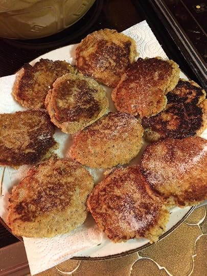 An alternative procedure which may be convenient and offers good results is to chill the batter for an hour or so, then divide it into balls (about 20) and flatten into cakes; the cakes should be small and not too thick. One advantage is that much of the work can be done ahead of serving time; another is that the cakes will be of more uniform size, and less uneven in appearance.