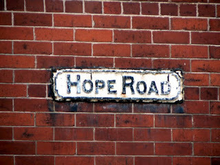 No, it's a short backstreet with absolutely nothing to commend it. When I was driving around the city with my dad, looking for places to set the novel, we parked up and got out to walk around. I saw the street name HOPE ROAD and just knew it was the title. Since that day I've never thought any more about titles.