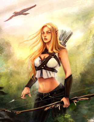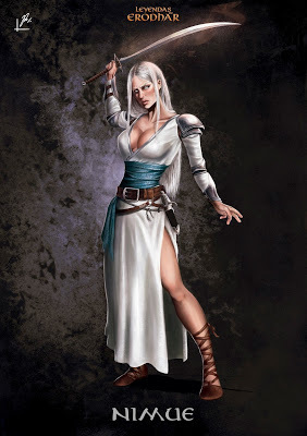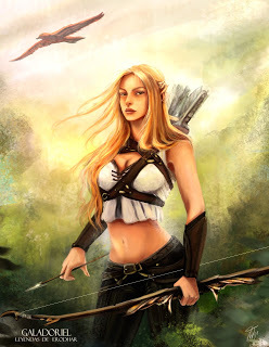 Ilustración: Lorenn TyrGaladorielEs una elfa del bosque, hija del caballero elfo Elthorn de la casa Esscara y Lady Lodriel, de la prestigiosa casa Galad Itriel, la más antigua del Consejo del Árbol Sagrado, de cuyos miembros se dice que por sus venas fluye la sangre pura de los Altos Elfos y, por tanto, son los últimos descendientes de los antiguos tylisios.