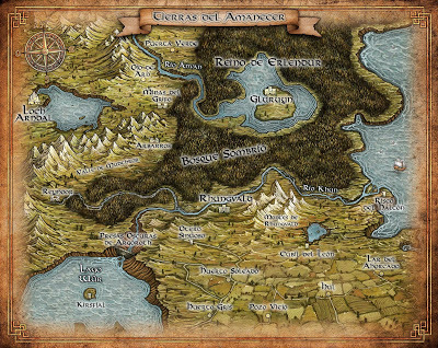 A falta de muy poco tiempo para la salida a la venta de la 2º edición de Leyendas de Erodhar 01 - La Vara de Argoroth, os presento el tercer y último mapa que vendrá en el interior del libro. Esta vez los tétricos y misteriosos parajes de "Las Tierras del Amanecer".