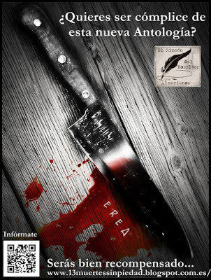 Hoy vengo a hablaros de un proyecto en el que estoy implicado con varios amigos y compañeros escritores de la asociación El Rincón del Escritor Almeriense (EREA) a la que pertenezco. Hace unos cuantos meses sacamos a la luz una antología de relatos eróticos titulada "12 Caricias", en la que cada uno de los escritores de la asociación (12 en este caso) hemos aportado un relato erótico. El libro ha recibido muy buenas críticas hasta ahora, por lo que nos hemos animado para sacar una segunda antología, esta vez cambiando la temática: hemos decidido pasar del erotismo al asesinato.