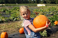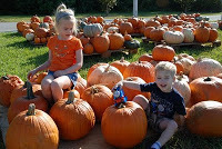 And speaking of pumpkins, here are a few of our grandkids enjoying a trip to the pumpkin patch. Georgia seems to have picked one as big as she is!