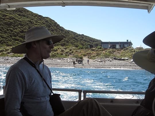 The whole world grew out of here; the heart of the whorl, though the globe has infinite such crowns. But as we packed the trunk of Glenn's car again, back on the mainland, it was immediately as if we'd never been there. Kapiti vibrated and fizzed, the same fictional blue as Foula. The wind had picked up, and we'd narrowly missed an indefinite stay on the island, or an expensive helicopter trip. It takes less than half an hour to get to Kapiti but it's impossible to reach by boat when the wind gets up. The island hovered slightly above the shattering sea, ready to plane off, like Laputa.