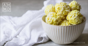 Typical fat bombs feature primary ingredients like peanut butter and cream cheese, which are two ingredients to avoid when following The Autoimmune Solution diet,, the Paleo diet, and The Myers Way®. The primary ingredient in these Lemon Keto Fat Bombs is coconut, which provides healthy medium-chain triglycerides (MCTs) and a subtle sweetness without any sugar.