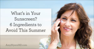 Homosalate – This common ingredient also helps sunscreen penetrate your skin and disrupts hormone balances. It can accumulate in your body faster than your body can detoxify it through your liver, lingering in your body and increasing your toxic burden.