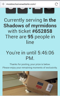 Recently read about the most exclusive website on the internet. The website that let's 1 person in at a time, and only for 60 seconds. Once you're in, you can post a short message, and by the time you realize that, your time is almost up. Once you have a message in, a cat video plays and you can read other posts. Upon logging out after 60 seconds, you can still read some of the posts.