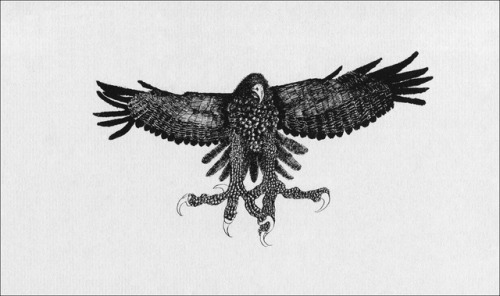 its prey gripped tight in its talons, some dark bit of entrail dangling. There