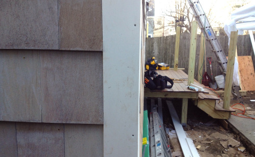 We spent the afternoon nailing cedar shingles to the back of