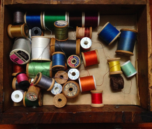 In an old sewing table that I haven’t found a place for, I open the small drawers. One is filled with spools of thread. In another, scraps of fabric, an envelope labeled in neat cursive I don’t recognize, piece from blue velvet couch. Whose? I wonder. Where? I remove the swatch, rub it between my fingers, put it to my nose to smell. Dust, time. I find below the fabric another envelope. Inside is a thin slab of smooth rock, about the size of a maple leaf, brown, vaguely heart-shaped, with a darkness in the center, deep and galactic. Held up to the window, light shines through webbed spots. The typed letter that accompanies it, dated October 14, 1983, explains more. Addressed to a Dr. Shneidman, Professor of Thanatology, it explains that the piece is a fossilized cross section slab of the spinal cord of a whale. I hold it, look again. How old? I wonder. How long gone? Here in my hand, its life is distilled and condensed by time, relic, remains. Prehistoric. A different sort of weight of years descends, vast, absorbing, incomprehensible, and I find I do not want it in my hands. And there on the table, a letter addressed to a professor of the study of death. What have I found? What have I lost? I fold the letter around the fossil, slip them back into the envelope, bury it at the bottom of the drawer. And I return to the spools of thread and am astonished how strands so thin can help mend holes, make seams, sew things back together. Our patchwork selves, time threaded.