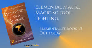 Our latest release is out today, Whirlwind of a Summer. It is a short story that follows Professor Dorosh. It takes place after our novel An Absent Gale. If you enjoyed the first novel in our Elementalist series you will love this one. If you haven’t already, you can also read more in the Elementalist world by picking up the Flight of the Phoenix Anthology and read our Scheme of the Wind story. That follows Professors Petrov and Kutuzov as they plot to find the Warden themselves.