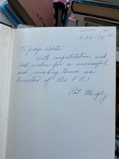 Who is Judge Webster? At the time, William H. Webster was a judge on the U.S. Court of Appeals for the Eighth Circuit. As indicated, President Carter appointed him to be the head of the F.B.I. in 1978, a role he held for a decade before being appointed head of the C.I.A. in 1987 by President Reagan. Webster is the only person to have led both agencies. The book didn’t contain any other notes or inscriptions. Patrick V. Murphy died in 2011. William H. Webster turned 100 years old in March 2024.
