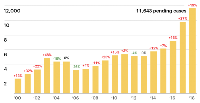 With few exceptions, the number of backlogged cases in immigration courts in Pennsylvania has increased steadily year after year. And since 2016, it has climbed sharply.