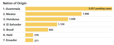 The vast majority of the pending cases are for immigrants from Mexico and Central America, with the most coming from Guatemala.